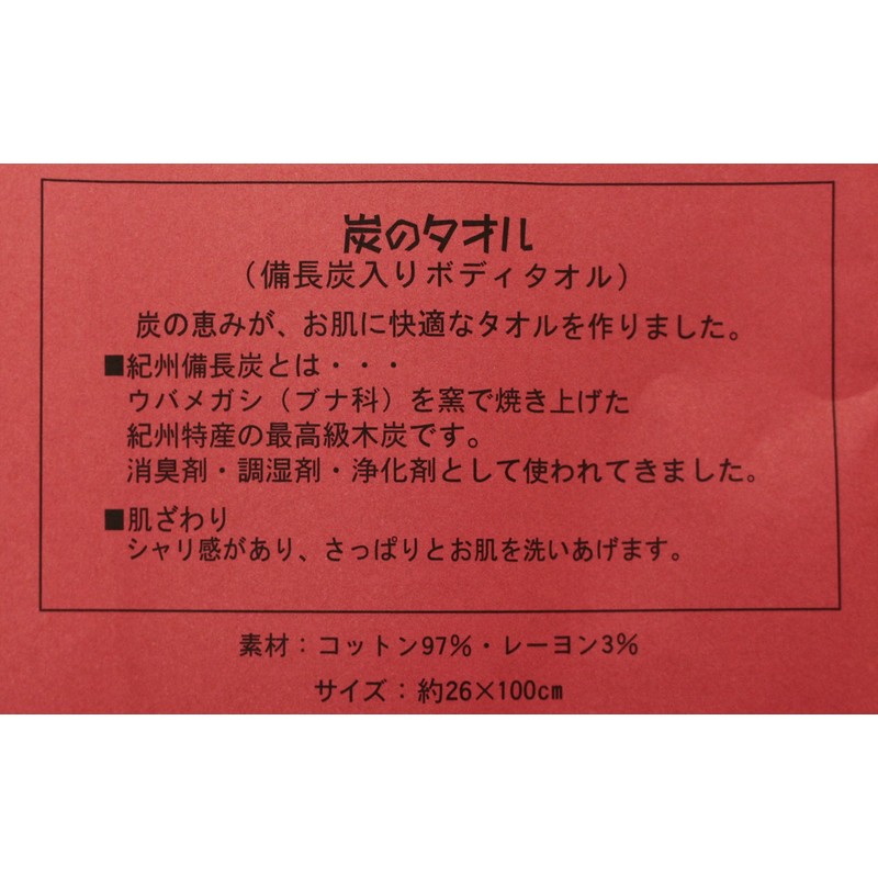 オリム 【今治産タオル】 炭のタオル ボディータオル (縦26×横100cm)