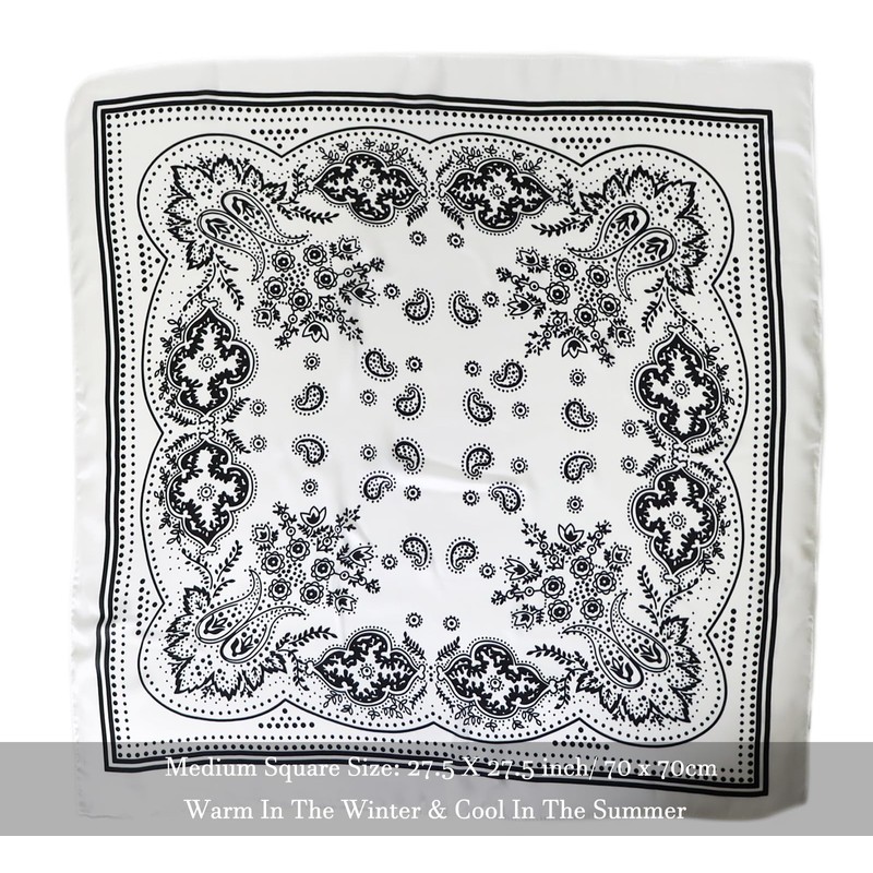 - SIZE: Medium square size 27.5'' X 27.5''/ 70cm x 70cm. Ingenious size design, suitable for making head scarf, square bandana, classy neckerchief, neck scarf, headband or strapping to wrist, handbags or waistbands for decoration. Elegant and generous.
