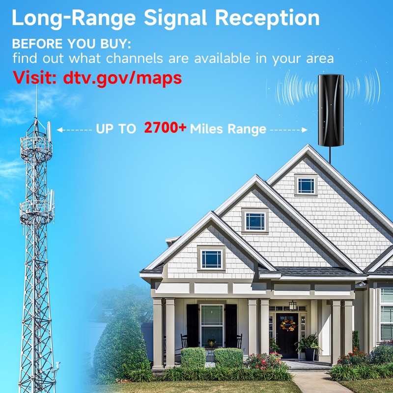 - ๐๐ ๐๐ ๐๐๐๐ ๐๐๐๐๐ ๐๐๐๐๐ ๐๐๐๐๐๐๐๐๐: Our upgraded TV antenna for smart tv receive signals from broadcast towers up to 2700 miles away. With its enhanced amplifier and premium signal-boosting tech, enjoy consistent HD reception anywhereโbedrooms, living rooms, hallways, or covered patios