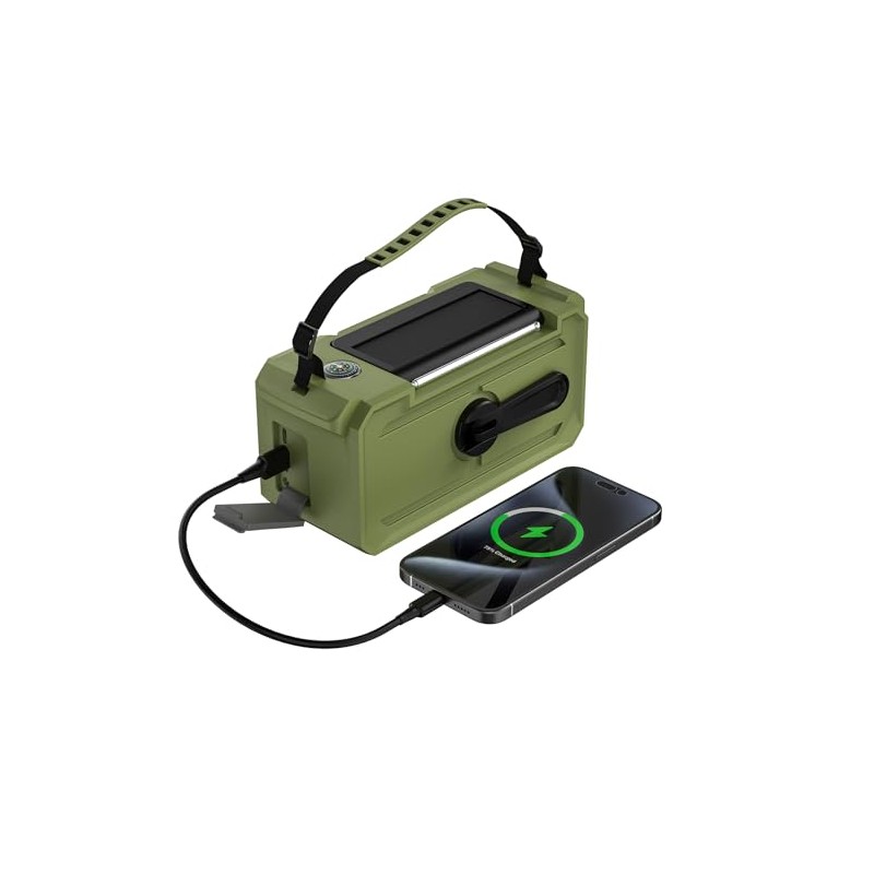 - 【Three Charging Modes】The crank radio supports fast and efficient charging via USB cable. In addition, in emergency situations or outdoors, you can also use other power sources such as crank or solar panel. These three charging methods ensure the continuous operation of your emergency radio solar crank.
