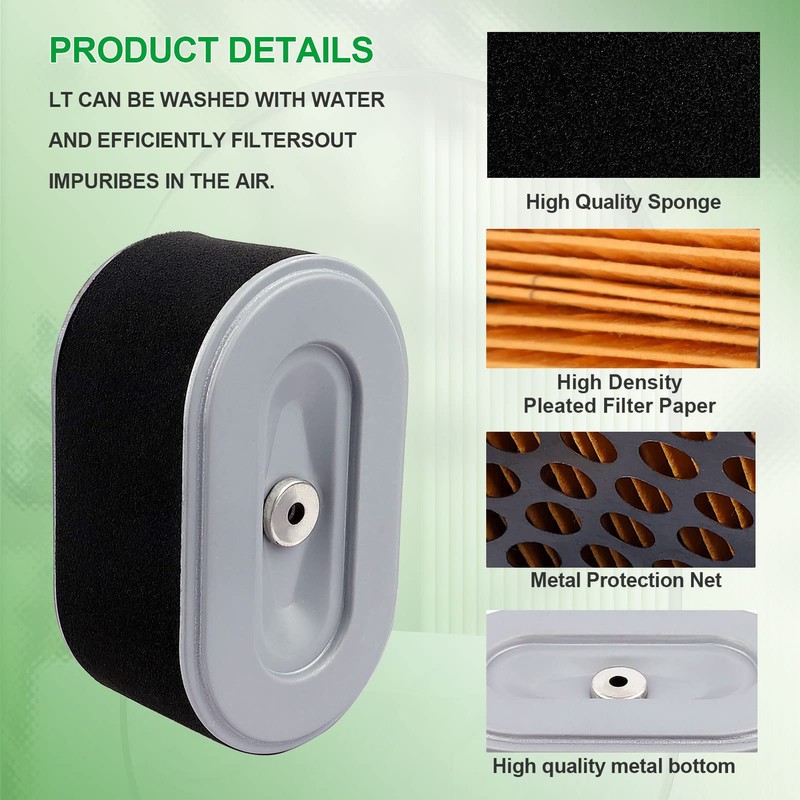 - Tamaño: Ancho: 3-5/16 pulgadas, longitud: 5-3/4 pulgadas, altura: 2-3/4 pulgadas. El paquete incluye: 1 filtro de aire, 1 filtro de prefiltro
