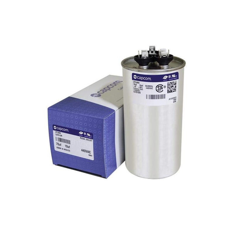 27L866 70 + 10 uf MFD 440 Volt VAC - GE Genteq Replacement Round Run Capacitor by CAPCOM