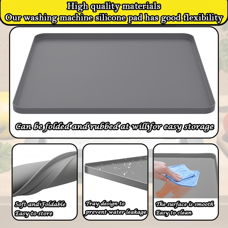 - High Quality Material: Our Washing machine silicone pad mat has good flexibility, can be folded and rubbed at will for easy storage. Silicone material is heat-resistant, even in high temperature conditions can ensure intact, it can fit perfectly on the top of the washing machine, and can also be used as a storage tray for various items