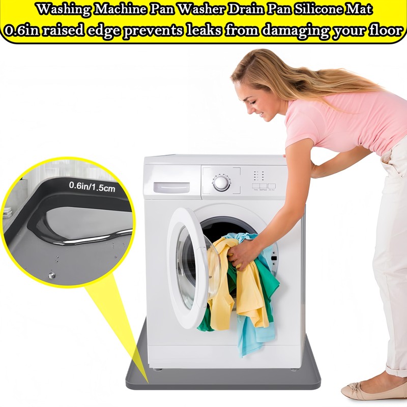 27×27inch Washer Drain Pan Silicone Mat, With Raised Edge Washing Machine Silicone Mat, Multi-function Non Slip, Soft Foldable Portable Waterproof Pad(grey)