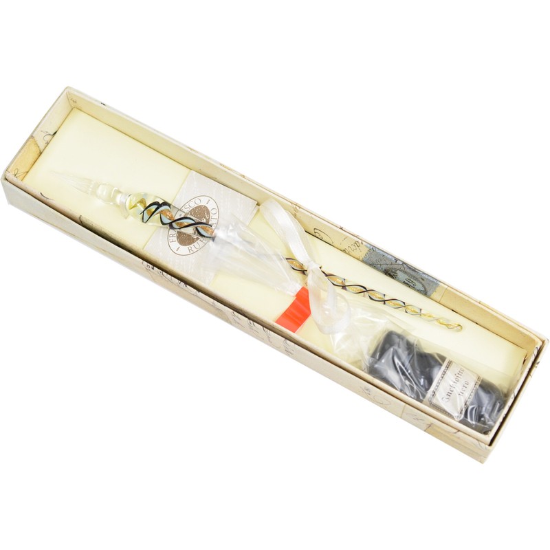 Rubinato Italian Glass Pen Set includes 28/ALF glass pen with swirl decoration and ink. As this item is handmade, the design, shape and color of the product may differ from the picture depending on the production lot. Please note that there may be bubbles or small scratches inside the glass, but please understand that it is handmade personality.