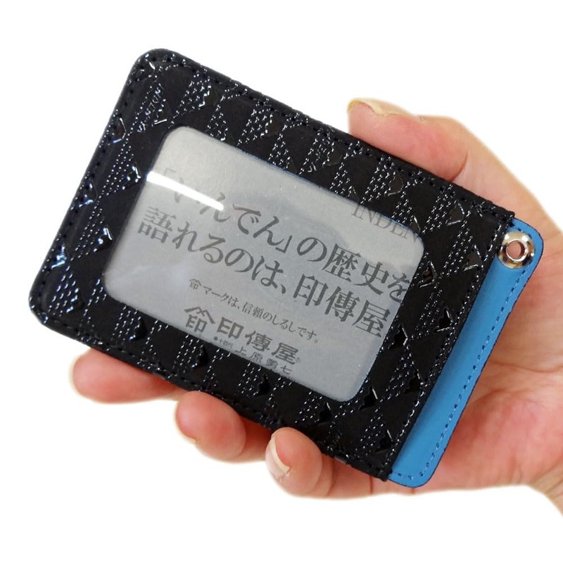 [印傳屋] 印伝 2805たかね パス入れ 黒地鹿革×黒漆 富士山柄 定期入 パスケース シンプル