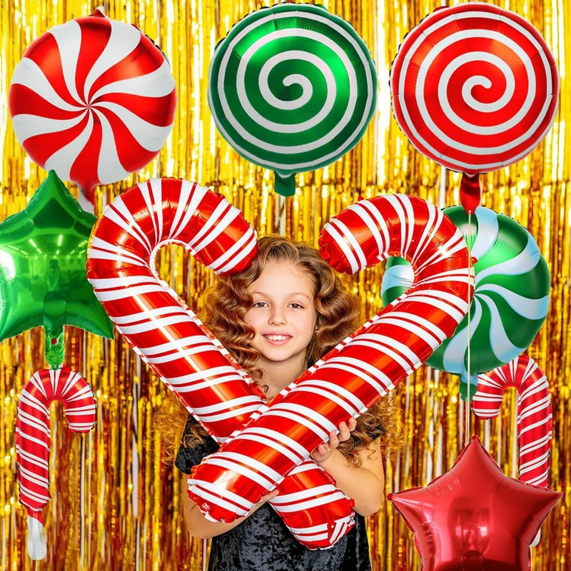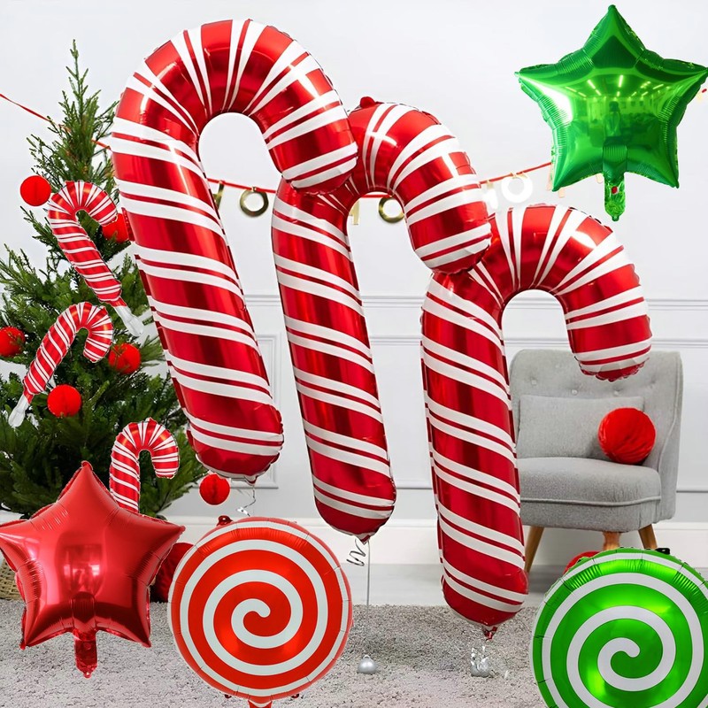 - Christmas Classic Design: Our candy balloons kit adopt classic Christmas elements, such as cane, sweet candy. These foil balloons of vibrant red and green are perfectly fits the cute and sweet atmosphere of Christmas