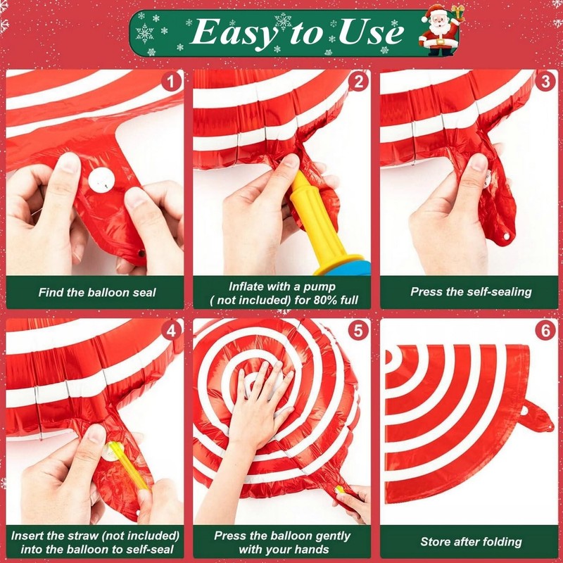 - Easy To Use: Just use a straw or air pump to inflate the balloon. After filling, flatten the expansion port and automatically seal it without air leakage. Use a straw to deflate after use for reuse. You can place the Christmas balloons anywhere you like, or tie a ribbon to make the balloon float and start an unforgettable party