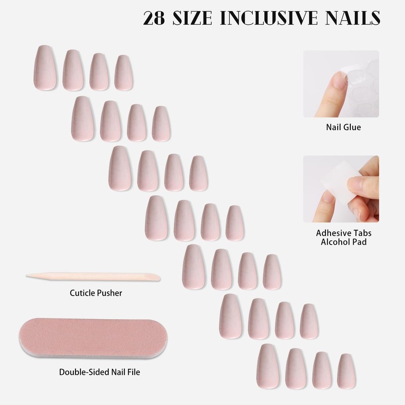 • What's Included:14 nail sizes ensure a totally custom fit, plus we give you everything needed just in case! Each set comes complete with a storage box, adhesive tabs, double-sided nail file, cuticle stick, and prep pad.