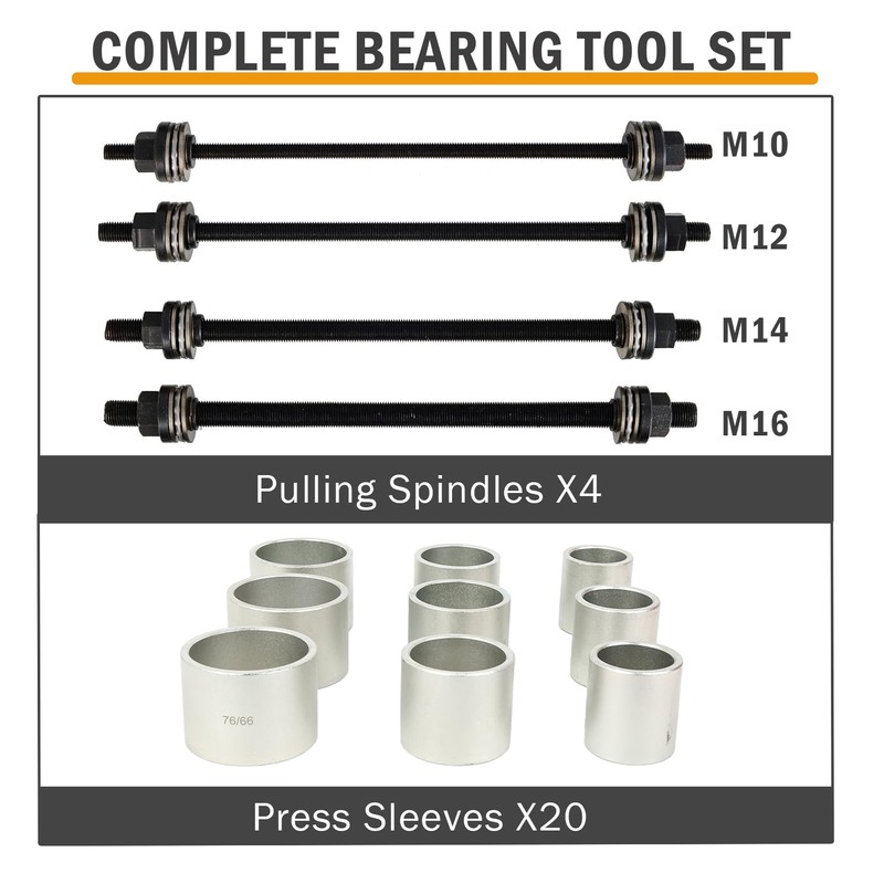 - Bearing press kit include inside Diameter: 34,36,38,40,42,44,46,48,50,52,54,56,58,60,62,64,66,68, 70,72mm