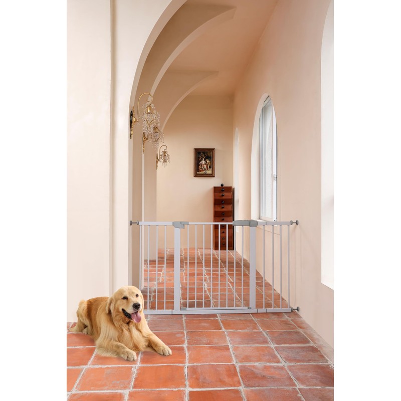 • Fits a Variety of Openings: Adjusts to fit openings 29-57 inches wide, making it perfect for doorways, staircases, and hallways. Stands 30 inches tall, ensuring safety for toddlers and pets. Comes with a 2.75"- 13.8" extension kit for easy adaptability.