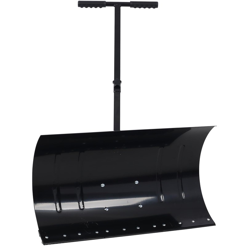 29in Heavy Duty Steel Snow Shovel Pusher with Wheels for Driveway, Cushioned Adjustable Handle, Angled Blade, Efficient Snow Removal Tool, Back Saver Snow Plow - Black