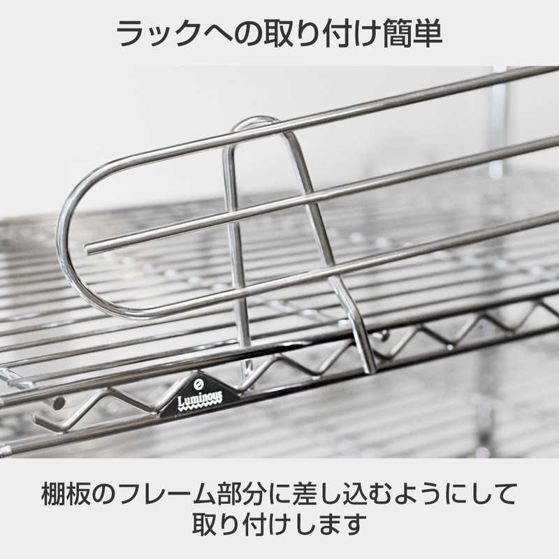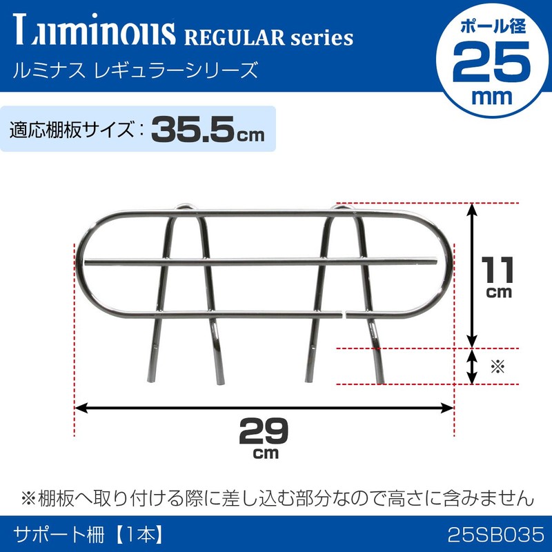 ドウシシャ ルミナス スチールラック落下防止パーツ サポート柵 幅29×高さ14cm 25SB035 奥行35cmタイプ ポール径25mm 倒れない ブックスタンド ブックエンド 本立て 書類整理 文庫本 小物収納 キッチン 衣類 展示 仕切り