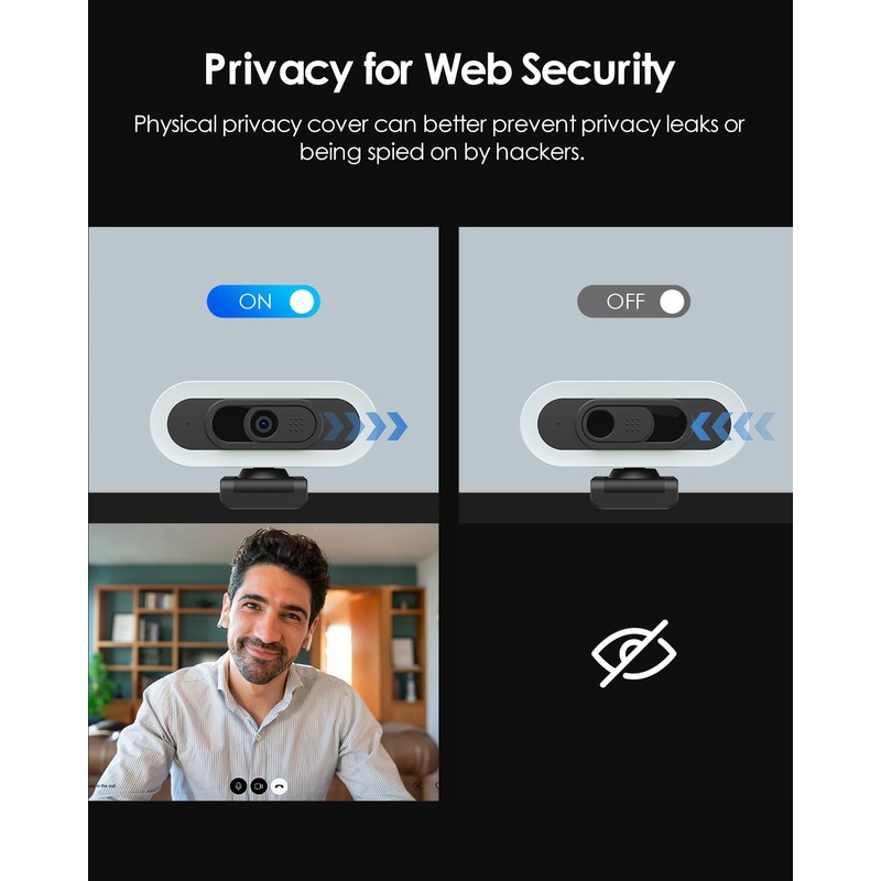 - Plug&Play Webcam with Privacy Protection ---- Our PC webcams can be automatically recognized by the computer without other drivers or software, very convenient to use. Extra privacy caps effectively protect privacy and security and keep lenses clean. The included tripod is also easy to install and operate.