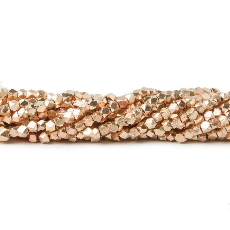 2mm Rose Gold Plated Copper Shiny Faceted Nugget Beads 8 inch 93 Pieces