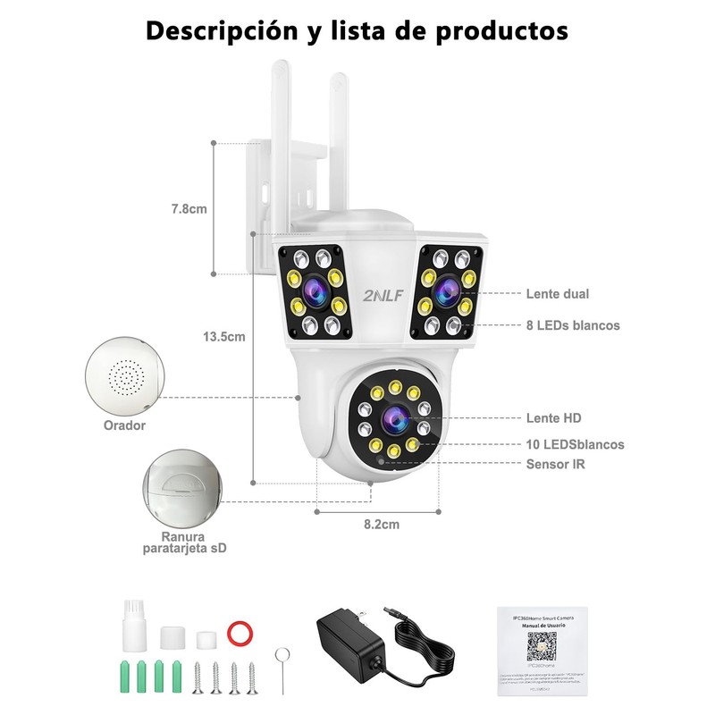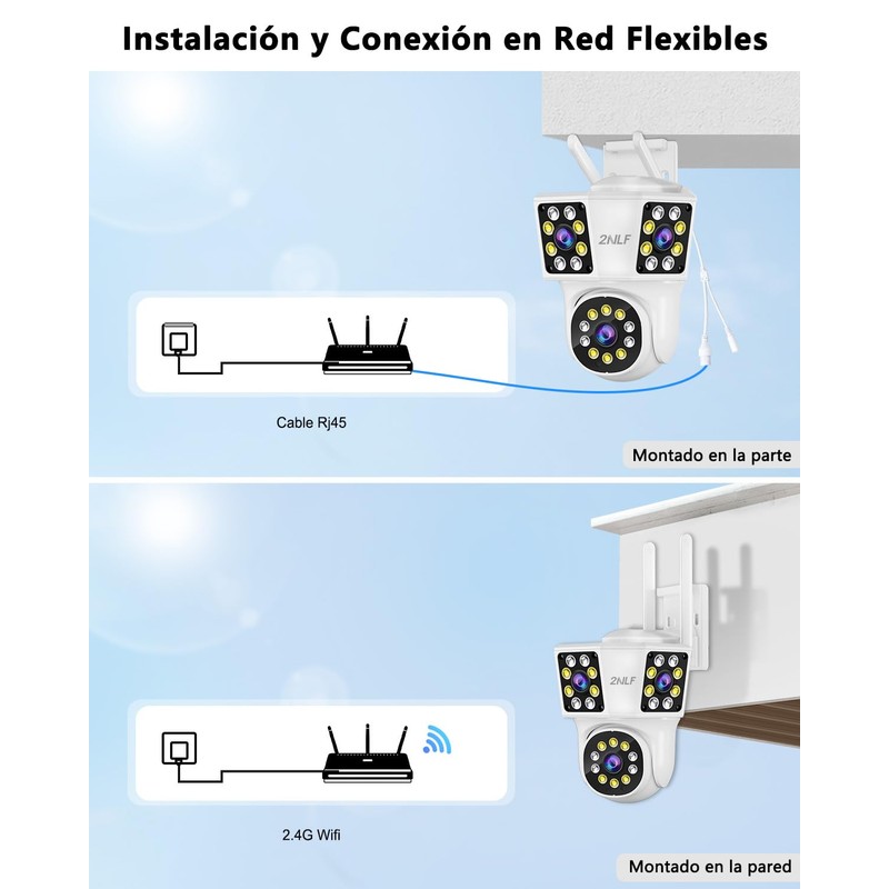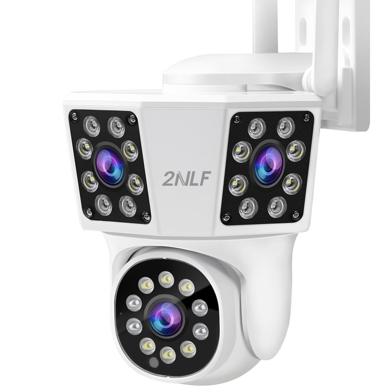 2NLF Camara de Seguridad Exterior Inalambricas con Vision Nocturna y Audio, 6MP Camara WiFi Tres Lentes, IP66 Audio Bidireccional, Detección de Movimiento, Grabación 7/24, IPC 360 Home App