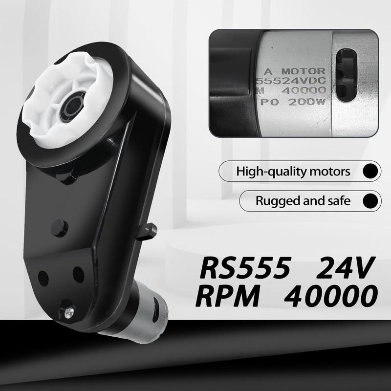 - [Include]: 2PCS 12Volt & 18Volt & 20Volt & 24Volt RS555 40000RPM Fast Drive Motor Steel Gears Motor Gearbox for Power Wheels Kids Ride on Toys Electric Car Motor Gearbox Upgrade,Free 2PCS Connector,Hitch,Tire Grip,fixing,coupler,Tires Adapter for Power Wheels Rubber Tire Upgrade,2 Motor Cables
