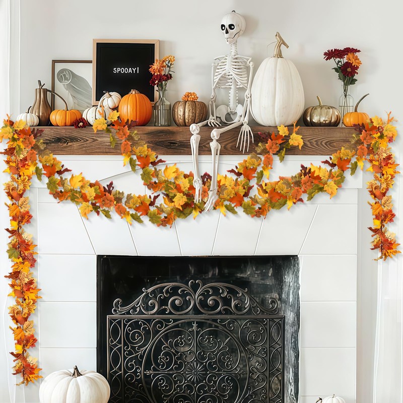 - [Reusable and DIY]: The fall garland is made of plastic and silk, soft and can be freely bent or cut.aIt can be DIY in any shape and is perfect for indoor and outdoor Halloween decoration and autumn decoration