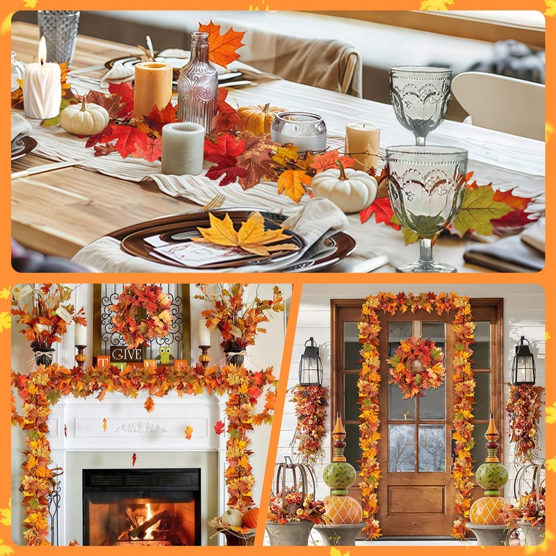 - [Widely Used]: Fall leaf garland are used for Halloween decoration, home autumn decoration, Christmas, autumn door decoration, stair railings, and fireplace decoration