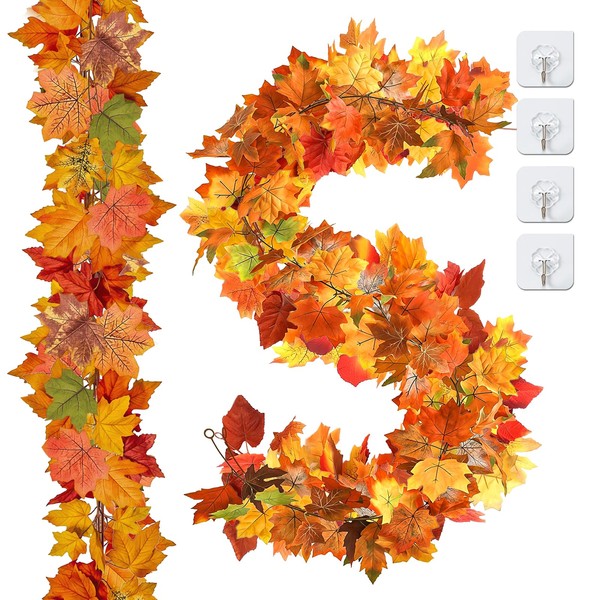 - [Thick and Colorful Maple Leaves]: Each fall leaf garlands is decorated with 7 different colors of maple leaves, Rich color gradients and excellent visual effects make them look like real leaves
