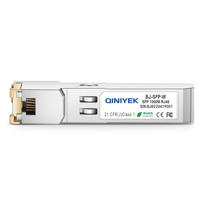 - 1000BASE-T SFP to RJ45 Copper Module: Data Rate:1.25Gb/s, Interface:RJ45 connector; Reach:up to 100M over CAT.5e Cable Type.