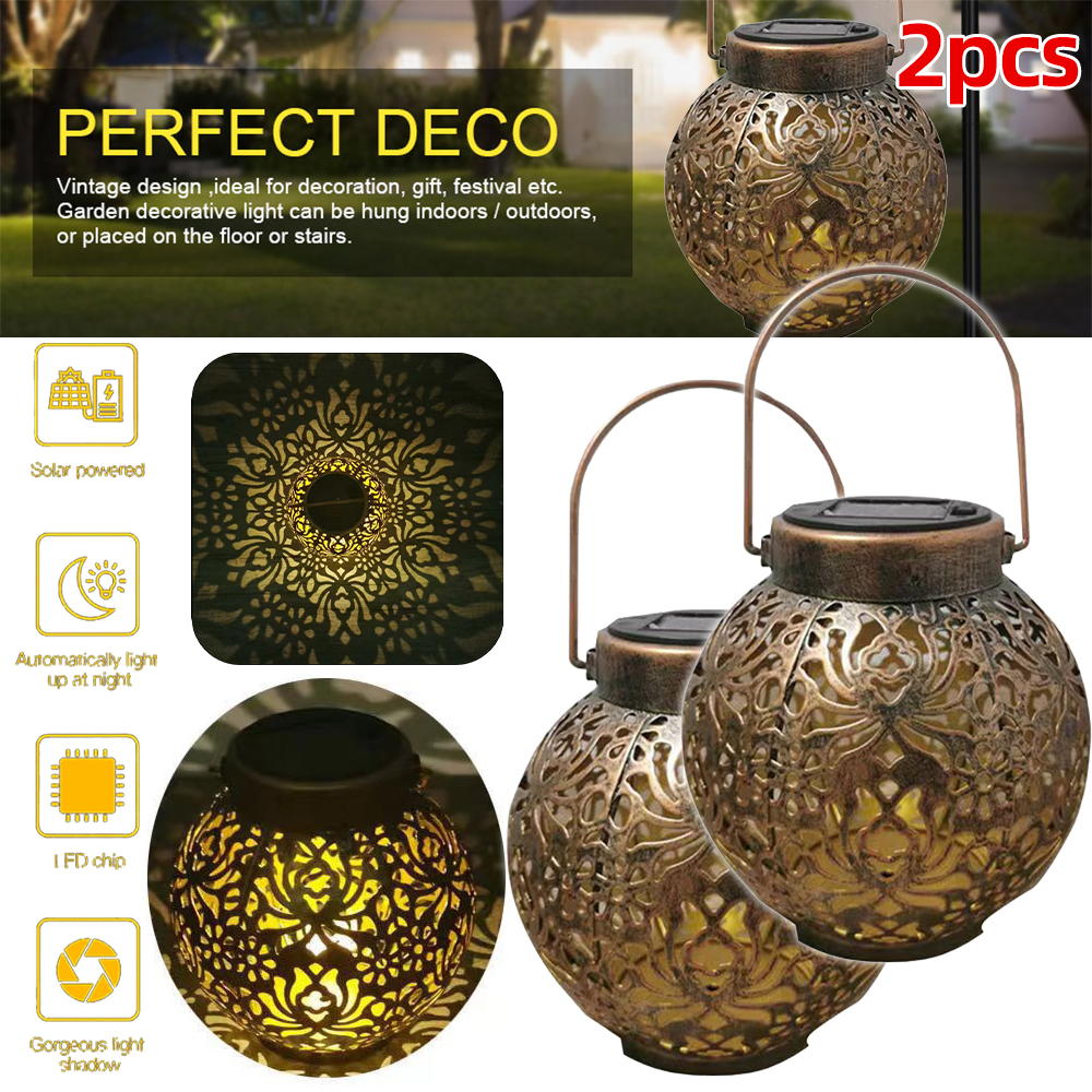 2Pack Solar Lantern Hanging Light LED Waterproof Outdoor Patio Garden Yard Lamp