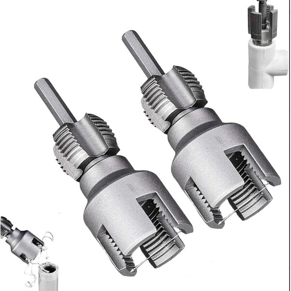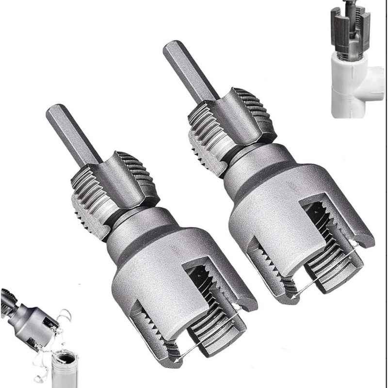 2PC Integrated Internal & External Pipe Threading Tool,2025 New Pipe Thread Cutting Tool,PVC Pipe Threader Electric Drill Compatible Plastic Pipes Threader Kit for 1/2" (DN15) 3/4" (DN20) Pipes Sizes