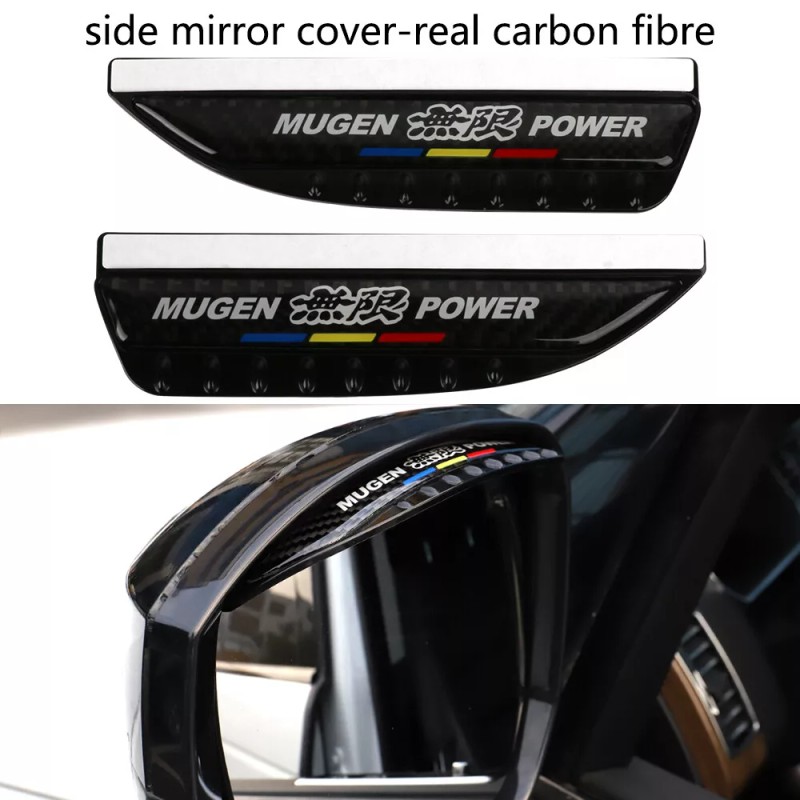 2pc MUGEN Carbon Fiber Rear View Side Mirror Visor Shade Rain Shield Water Guard