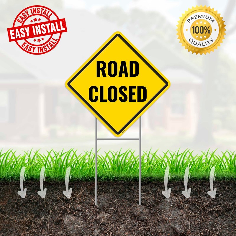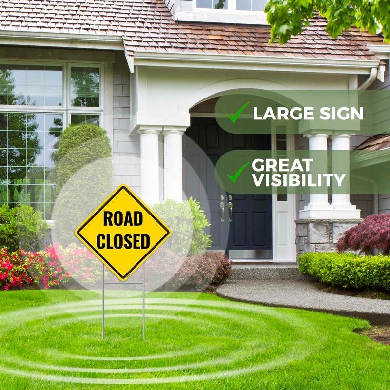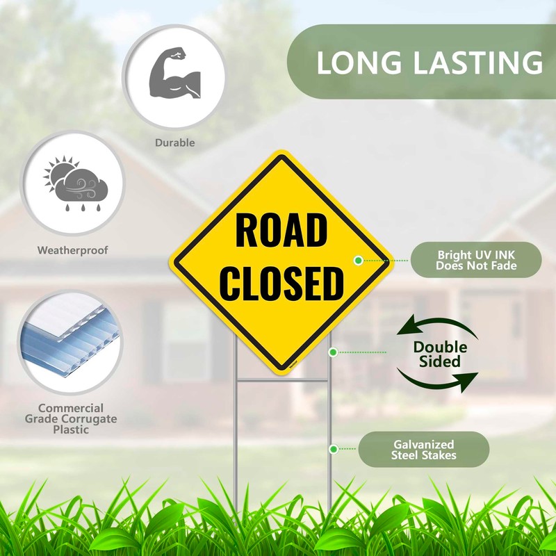 - Set of two: Includes 2PC road closed sign 13''x13'', 2PC metal ground stakes.