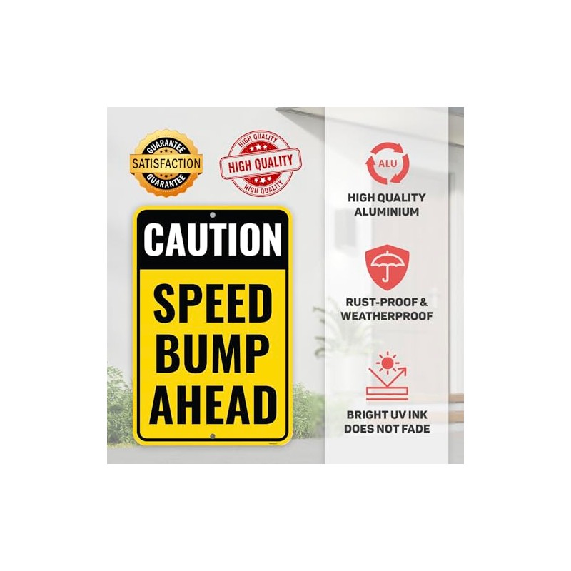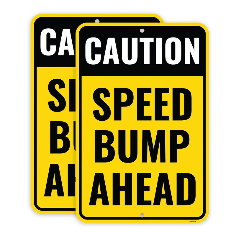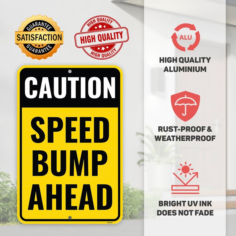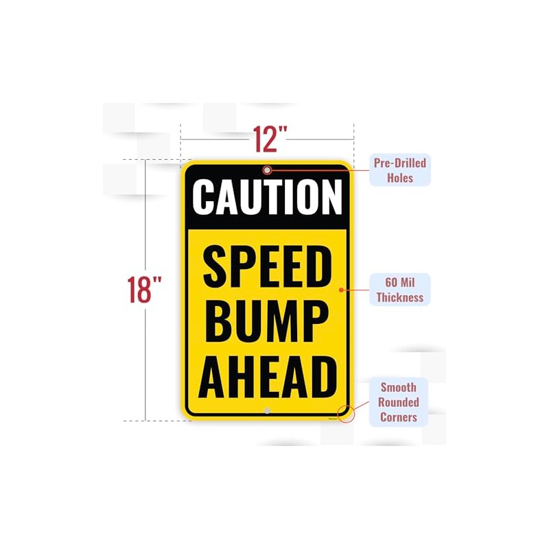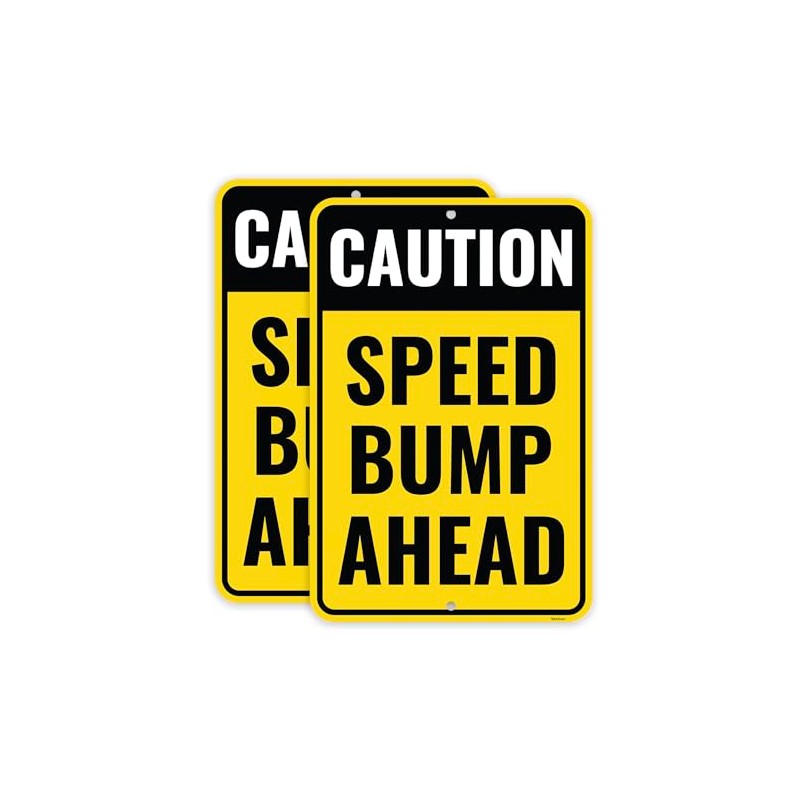 2PC Speed Bump Sign, 18 x 12 Inches - Aluminum - Caution Bump Ahead Signs
