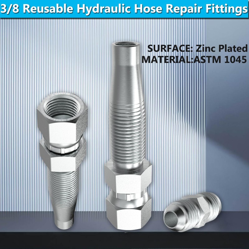 2Pcs 3/8inch Reusable Hydraulic Hose Field Repair Kit for Hydraulic Hose Crimper Fittings #06-06