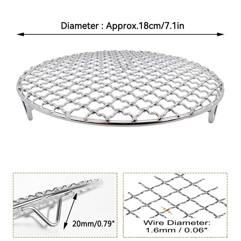 - Round BBQ Grill Rack:You will receive 2 x Round Cooking Rack,Outer Diameter: 180mm / 7-inch, Wire Diameter: 1.6mm / 0.06-inch, Height: 20mm / 0.79-inch.