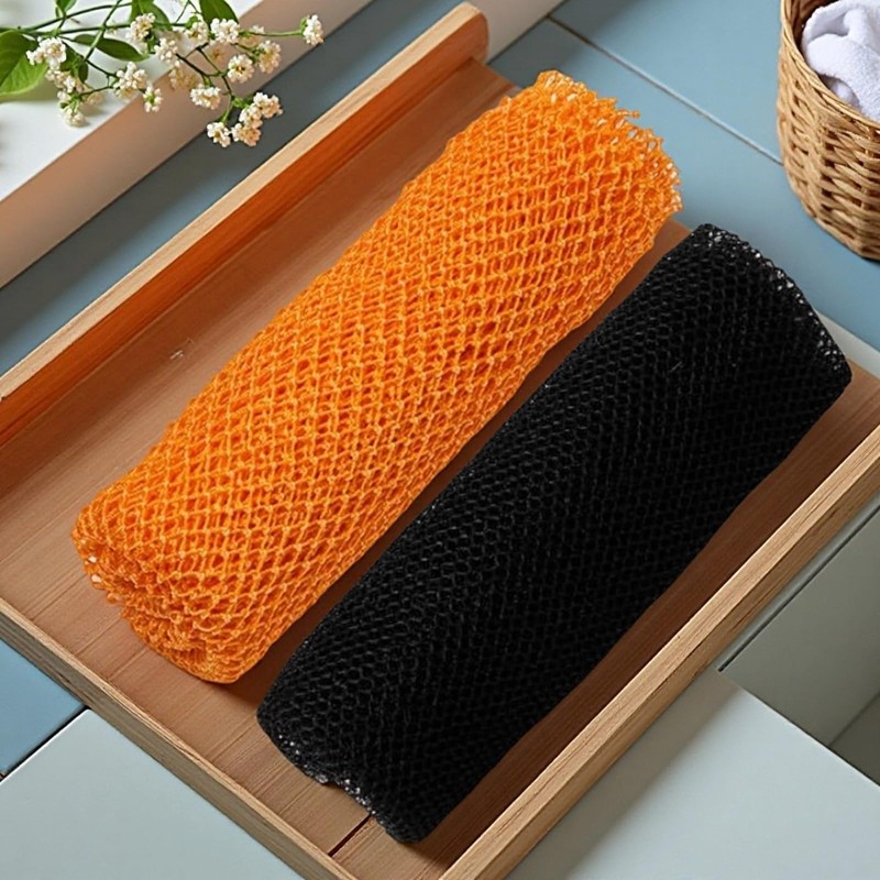 Indulge in a spa like bathing ritual with our premium 2pcs African Net Sponge Set. This set includes one black and one orange sponge, each measuring 30x75cm, crafted from 100% high quality nylon for superior durability and performance. Designed to elevate your daily hygiene routine, our sponges combine authentic African netting techniques with modern advancements to deliver exceptional exfoliation and skin care benefits.