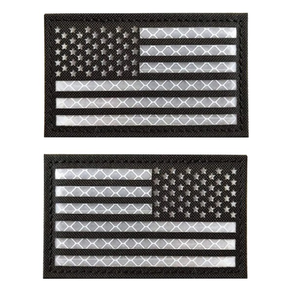 2PCS AliPlus America Flag Patches IR Infrared Reflective Patches Laser Cut Patch Regular and Reverse(Black White)