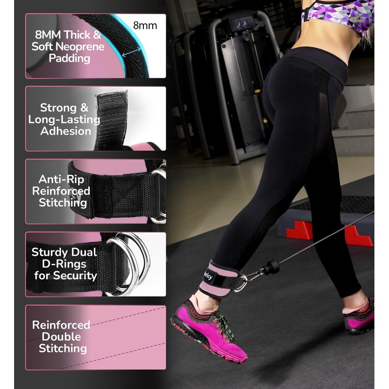- [VERSATILITY] Ankle Straps for cable kickbacks works great for cable machine exercises and glute exercises, particularly for glute workouts, leg extensions, kickbacks, hip abductors, and other lower-body exercises.