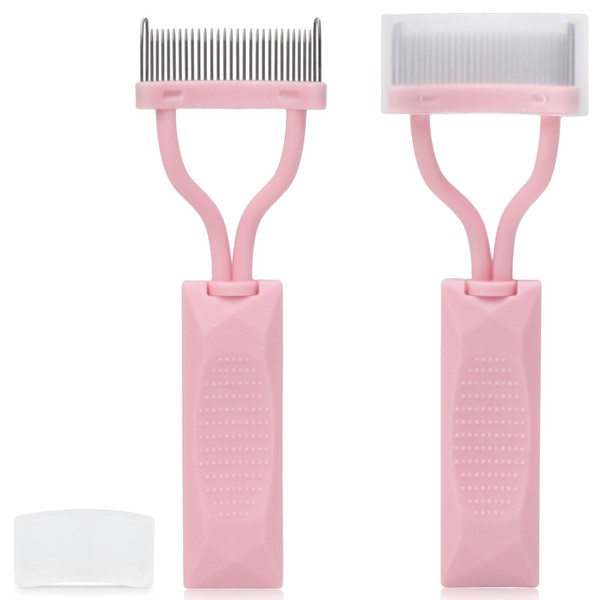 2PCS Arc-Shaped Pink Eyelash Comb – Lash Definer Mascara Separator Tool with Protective Cover