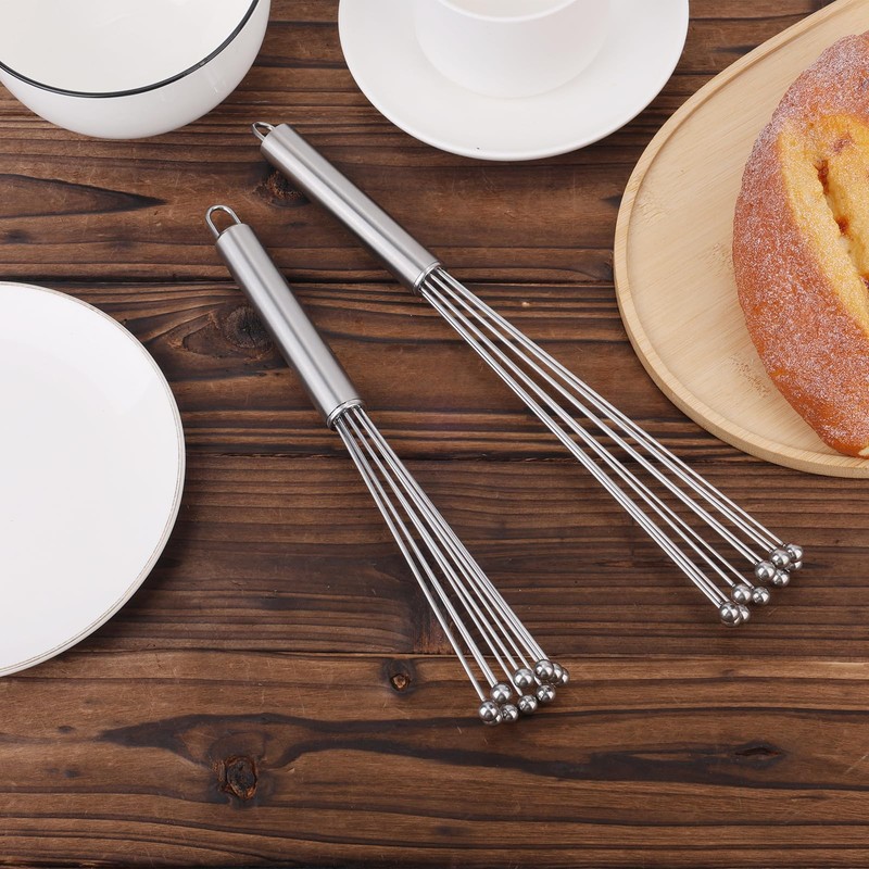 • Package Includes: You will receive 2 pieces of ball whisks, 2 sizes, 30.5x4.2cm/12x1.65 inch and 26x3.7cm/10.24x1.46 inch, enough to meet your different using needs.