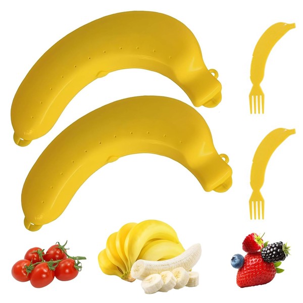 - Packaging content: You will receive 2 banana cases and 2 forks. Banana protector can be reused multiple times, is not easily deformed or broken, and has a certain degree of durability. A safe lid ensures that your food remains fresh and protected. You can not only take bananas, but also other small fruits, nuts, and vegetables.