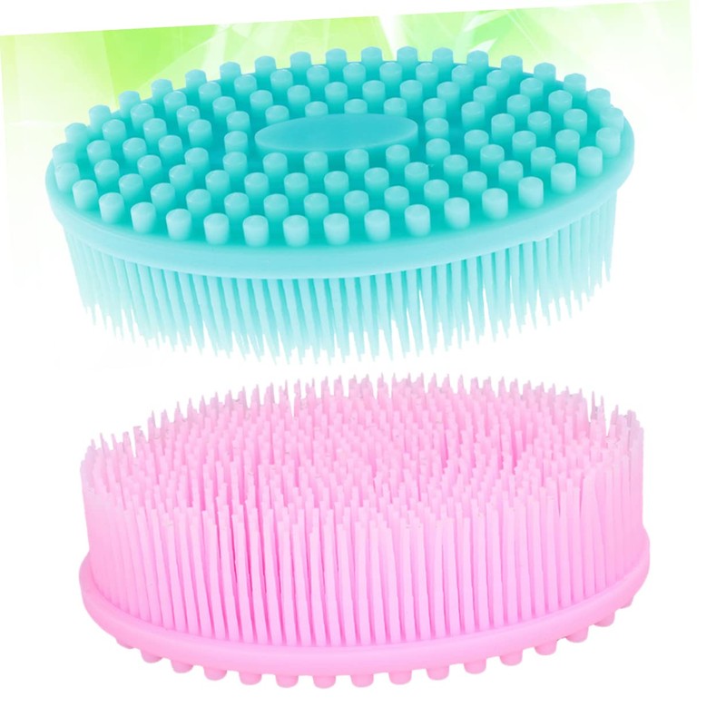 2Pcs Bathing Silicone Scrubbers Soft Shampoo Cleaning Massage Brushes Blue Pink for Portable Bath Accessories for Newborns Body Face Scrubbing Gentle Exfoliation