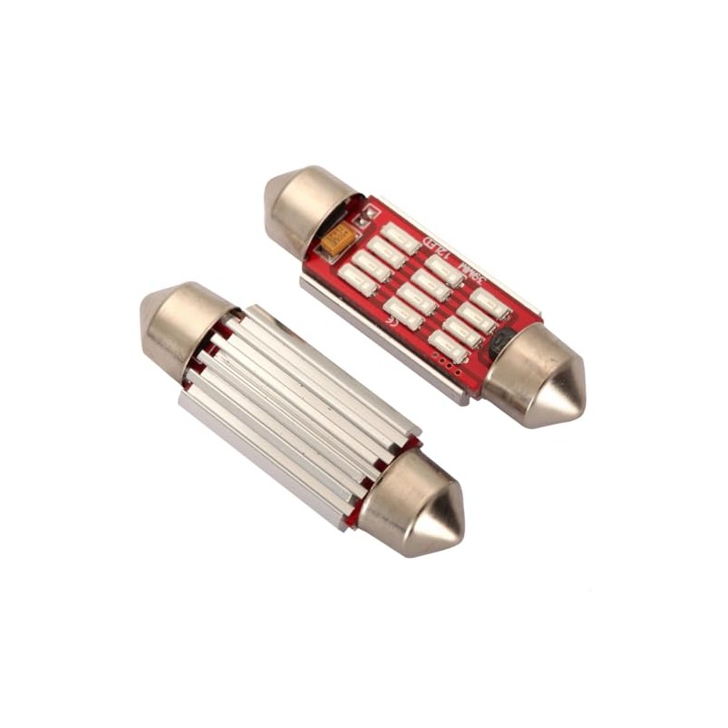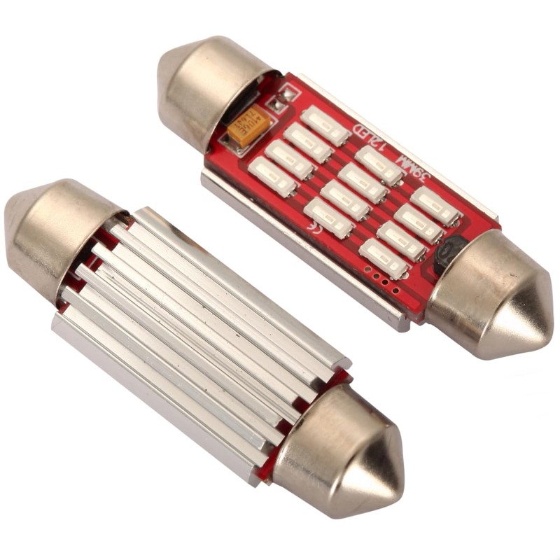 - (Set of 2 Bulbs) - High Quality 6 SMD PREMIUM LED Chips per bulb, These efficient light bulbs operate within a wide 9v-30v Voltage; light bulb Size: ~ 36mm long x 12mm wide (~ 1.4" x 0.5")