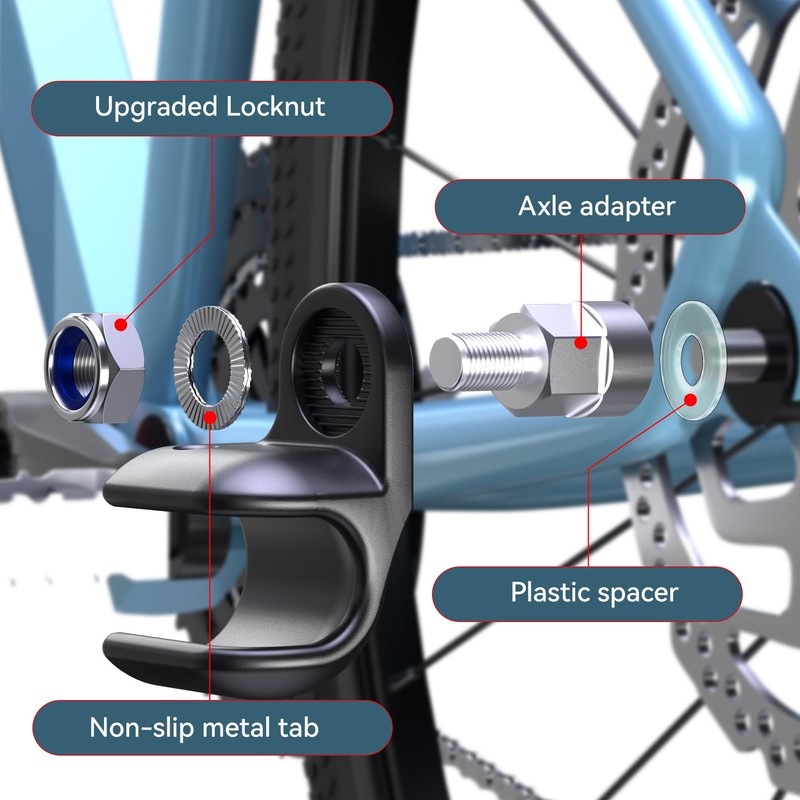 - Extend the Distance-When the rear wheel axle is too short to attach the trailer hook, you can use our axle adapter to extend the distance and space of the axle.It also prevents the clutch from contacting the tire when the bike is turning, improving safety while preventing potential damage