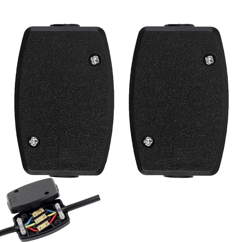 2Pcs Black 3 Terminal Electrical Cable Junction Box 13amp 250v Flex Connector 3 Core Cable Joiner Black Cable Connectors For Indoor Wiring, Lighting,Power