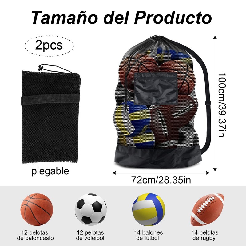 - ✔【BOLSA DE MALLA EXTRA GRANDE】Esta bolsa para balones de fútbo mide 27,56 × 39,37 pulgadas, puede contener varias pelotas para deportes como fútbol, béisbol, baloncesto, voleibol y más. La bolsas de malla para balones puede almacenar otros equipos deportivos, incluso su ropa.