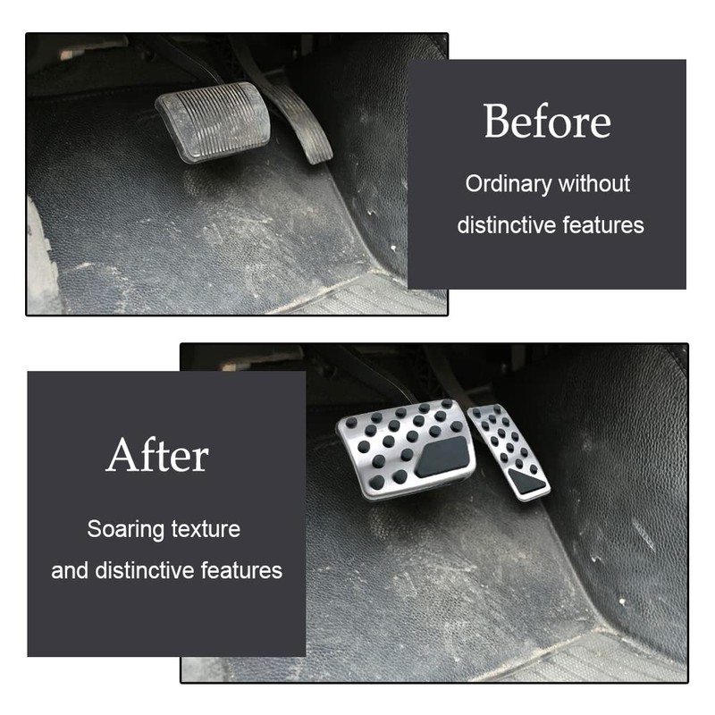 - [Packaging includes]: You will get 1*brake pedal cover, 1*accelerator pedal covers, Non-Slip Foot Pedal Covers Set, The metal surface is very texturing, making it the best gift for relatives and friends.