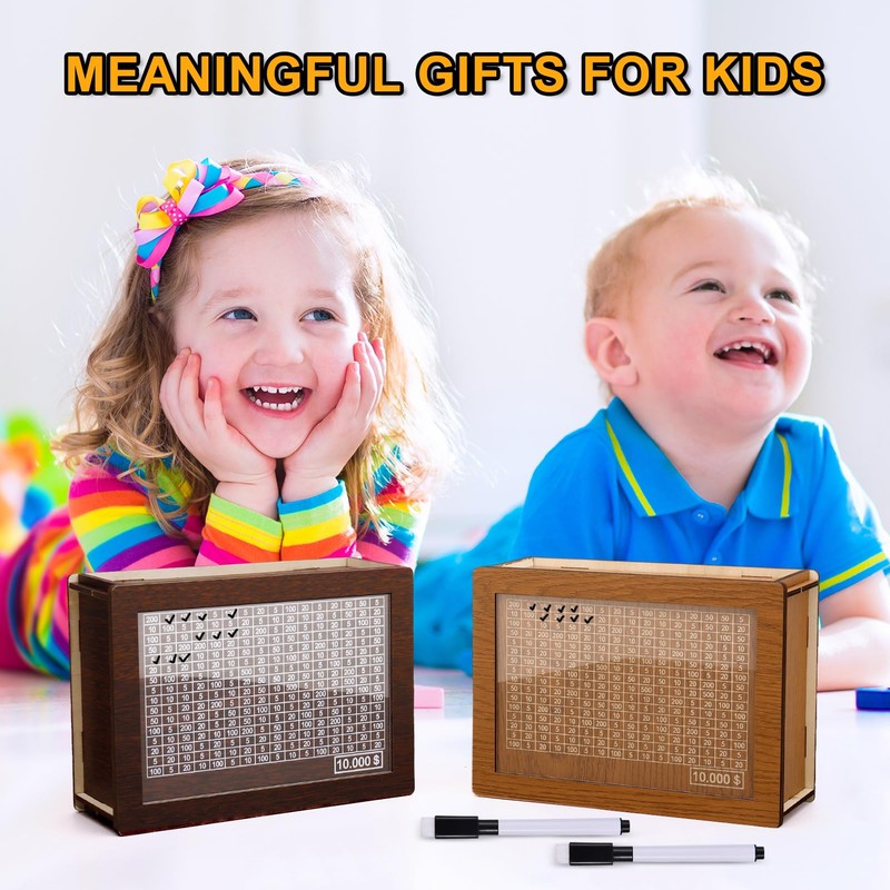 - 【Ideal Gift for Anyone】Wooden Coin Bank Box,an innovative saving box designed for all ages. A meaningful and unique gift for kids,teens and adults. It's also a great gift for birthday, Children's Day, Christmas, Easter, Valentines day.