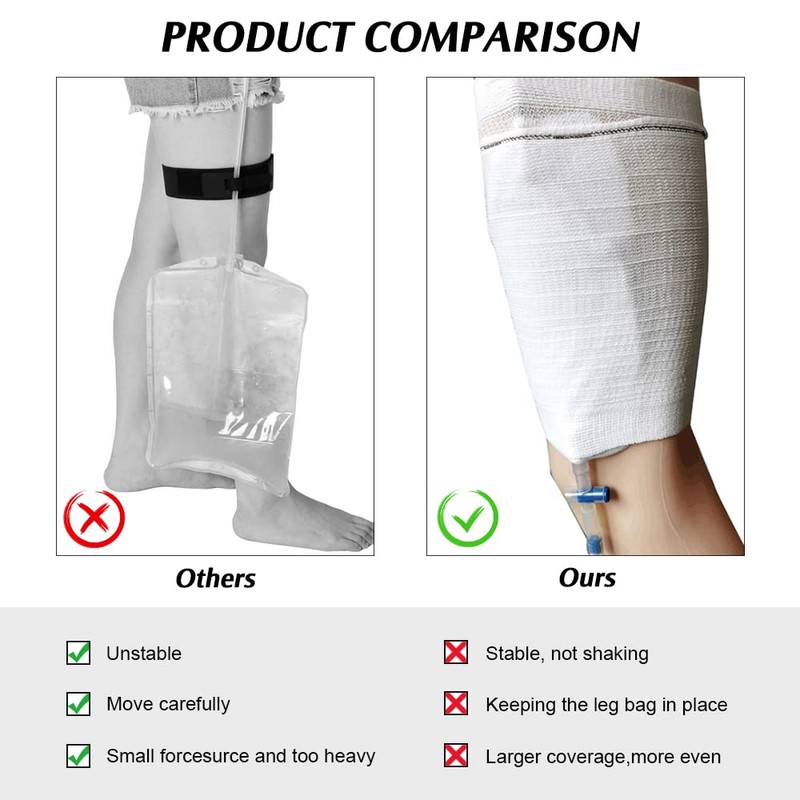 2Pcs Catheter Leg Bag Holder, Foley Leg Bag Sleeve, Fabric Catheter Sleeves Leg Bag Holder, Drainage Bags Calf Holder Strap, Elastic Catheter Sleeve for Legs (S)