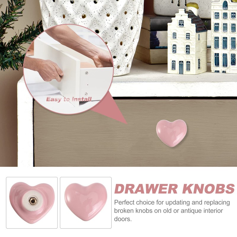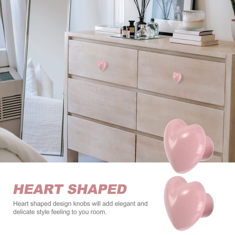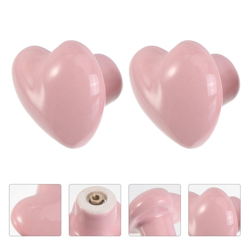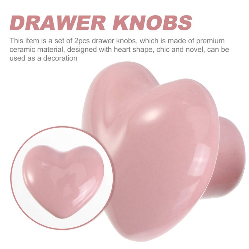 2PCS Ceramic Door Knobs, Heart Shaped Drawer Pulls Ceramic Knobs for Cabinet Cupboard, with Screw, Pink