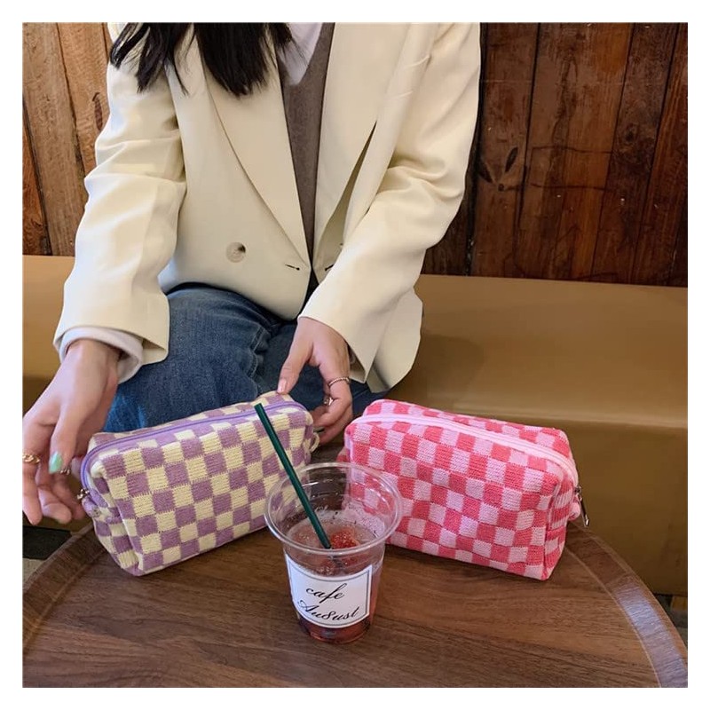 - Large Capacity: The size of checkered cosmetic bag is 6.3 × 3.9 inch and 9x3.1inch.It is easy to store small items, makeup brush, etc, to make your daily make-up, eyebrows, eyeliner, cream, lipstick, perfume and other beauty things organized and protected.