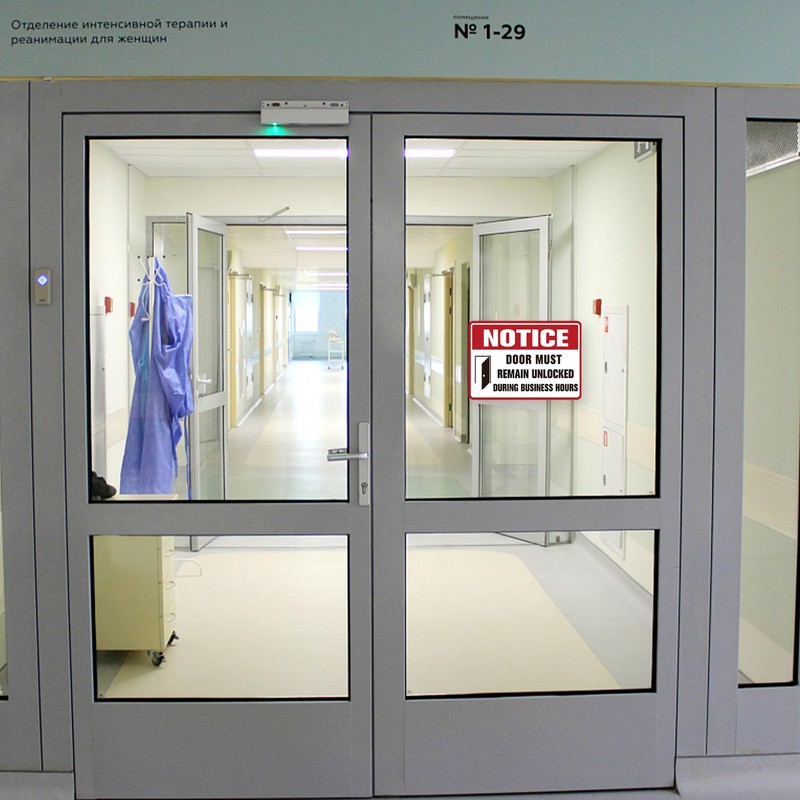 2PCS Door Must Remain Unlocked During Business Hours Sticker Sign,Self-Adhesive Waterproof Durable Please Do Not Lock The Door During Working Hours for Glass, Business, Office, Gate(9" x5.9")