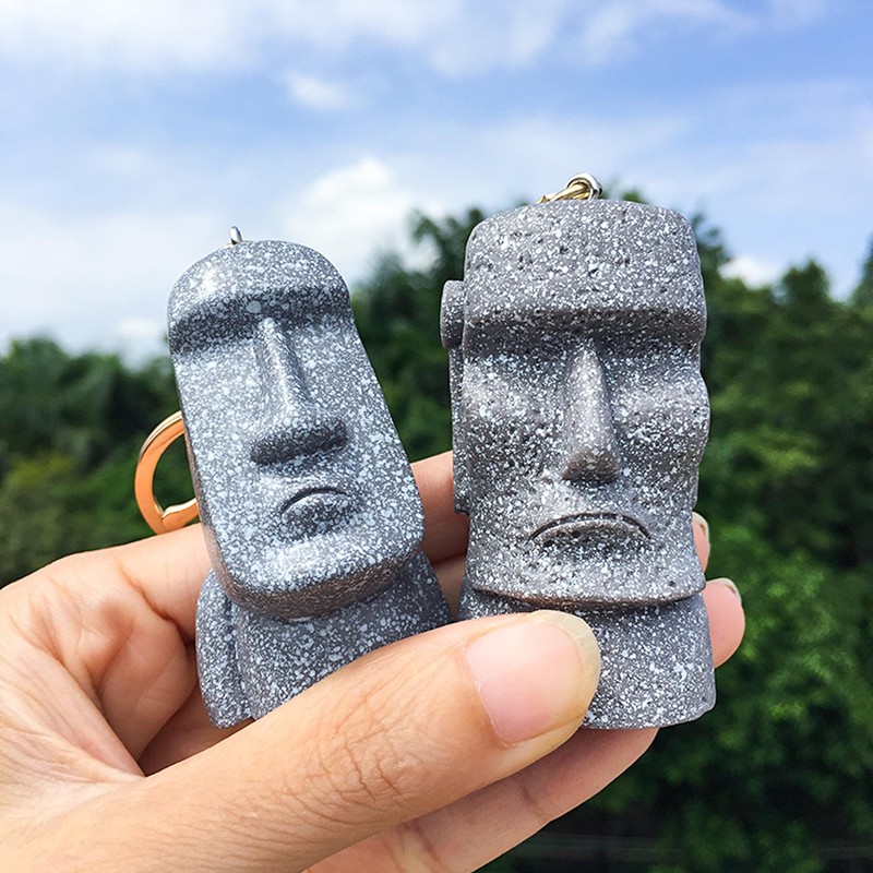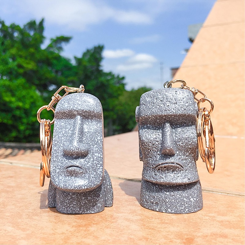 2PCS Easter Island Figurine Keychains, Moai Statue Sculpture Keyring Pendant ...